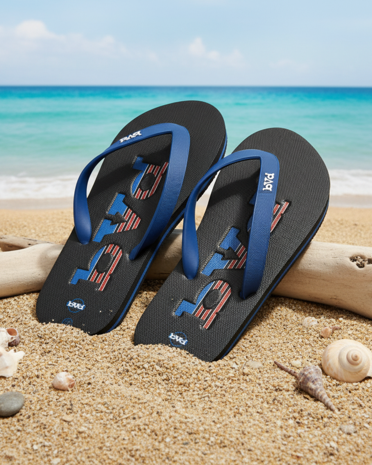 Embossed Flip Flop - Black/Royal